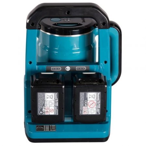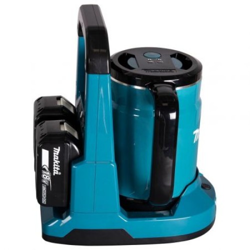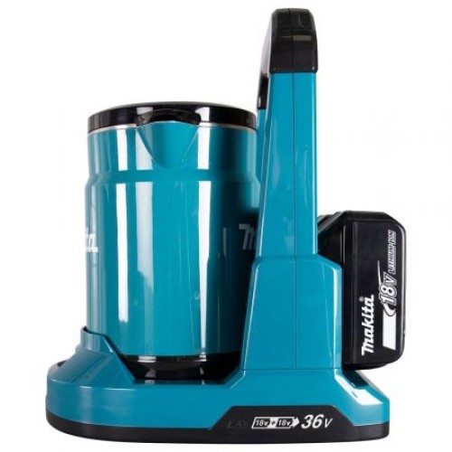 В ряду аккумуляторных гаджетов от компании Макита эта модель была представлена в 2023 году. Чайник Makita DKT360Z позволяет вскипятить воду в любых условиях – были бы в наличии две литиевые батареи BL18. Их суммарное напряжение 36 Вольт позволяет при емкости аккумулятора 3 А-час довести до кипения литр воды, а при емкости 6 А-час – 1,7 л.