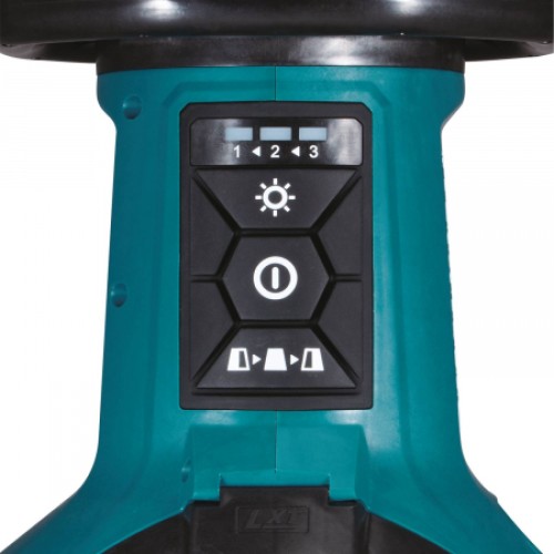Включается фонарь Makita DML810 кнопкой – она же используется и для выключения. Управление яркостью производится последовательным нажатием на соответствующую кнопку. Минимальное значение светового потока – 1500 люмен. Ещё один элемент управления – кнопка изменения сектора освещения. Свет может быть круговым или направлен в требуемую сторону.