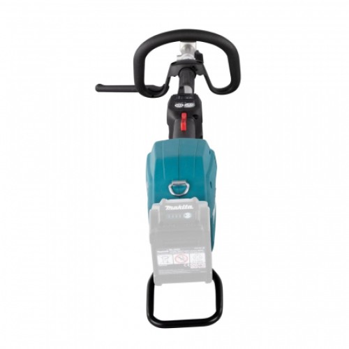 Управление мотоблоком Makita UX01GZ осуществляется с пульта управления, смонтированным на штанге над рукояткой. Включение и выключение питания – одной кнопкой, курок включения привода оснащен блокиратором для защиты от случайного нажатия. Кнопка включения питания используется и как переключатель скорости. Частота вращения изменяется при каждом последовательном нажатии, а значение отображается на индикаторе.