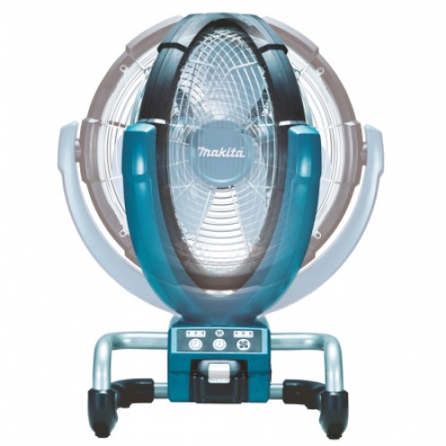 Как и любой бытовой аналог, вентилятор Makita DCF300Z при работе может автоматически разворачиваться «по курсу» на угол 45 град в обе стороны. Однако, степень его свободы шире – направление потока можно развернуть и «по тангажу», то есть, в вертикальной плоскости.